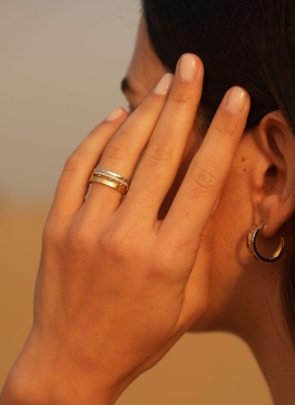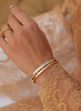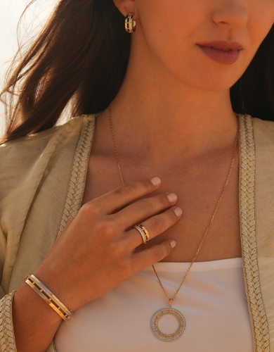 Born from light and made to unite. Crafted in a seamless blend of yellow and white gold where contrasts coexist and complement one another. Shams is a celebration of togetherness.